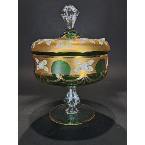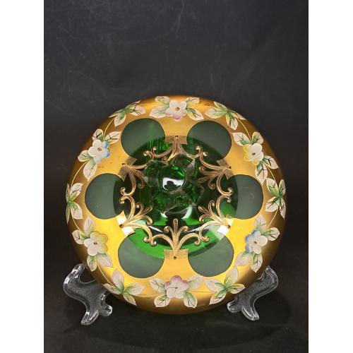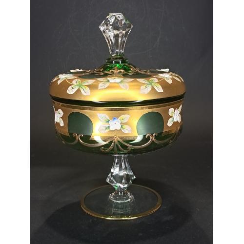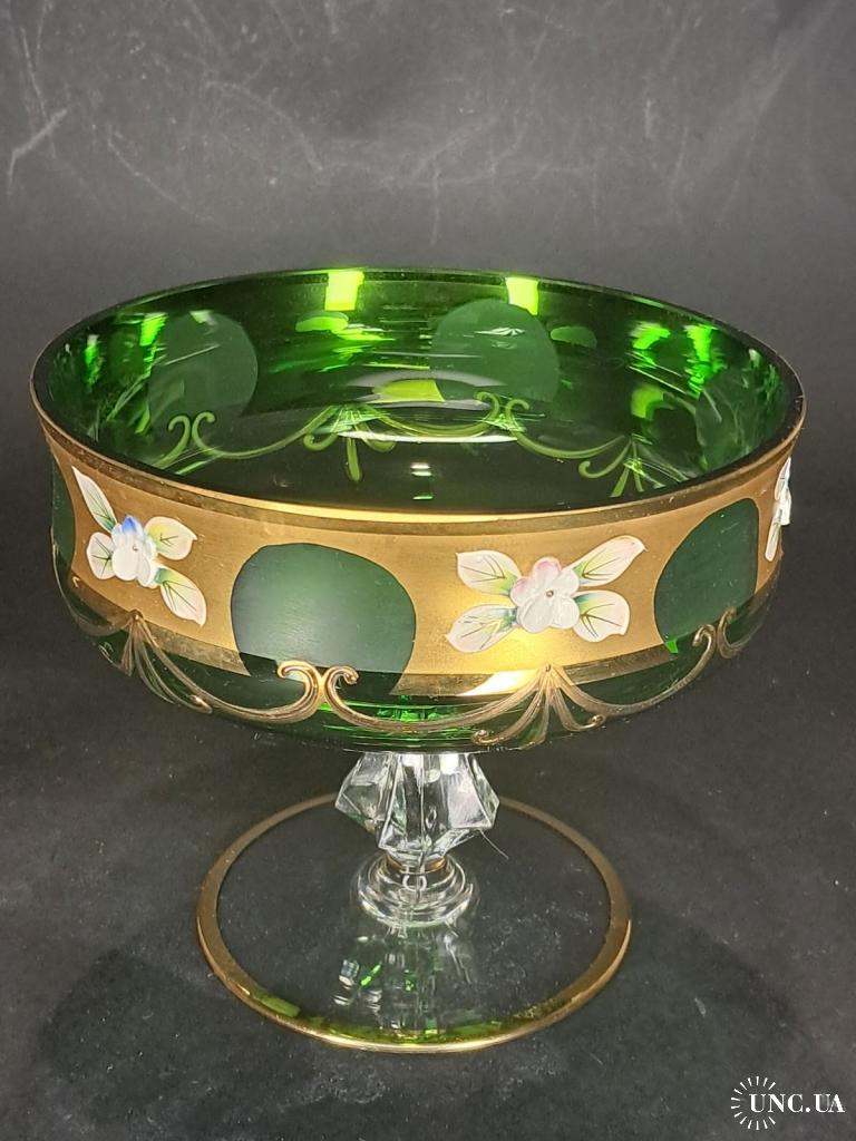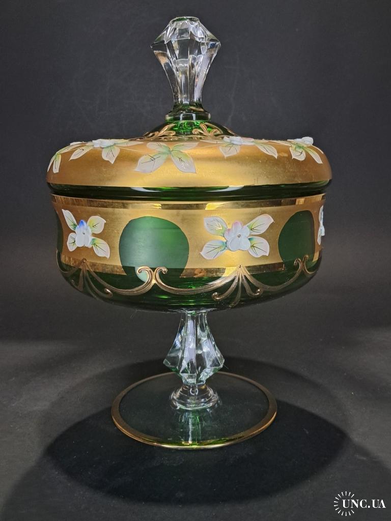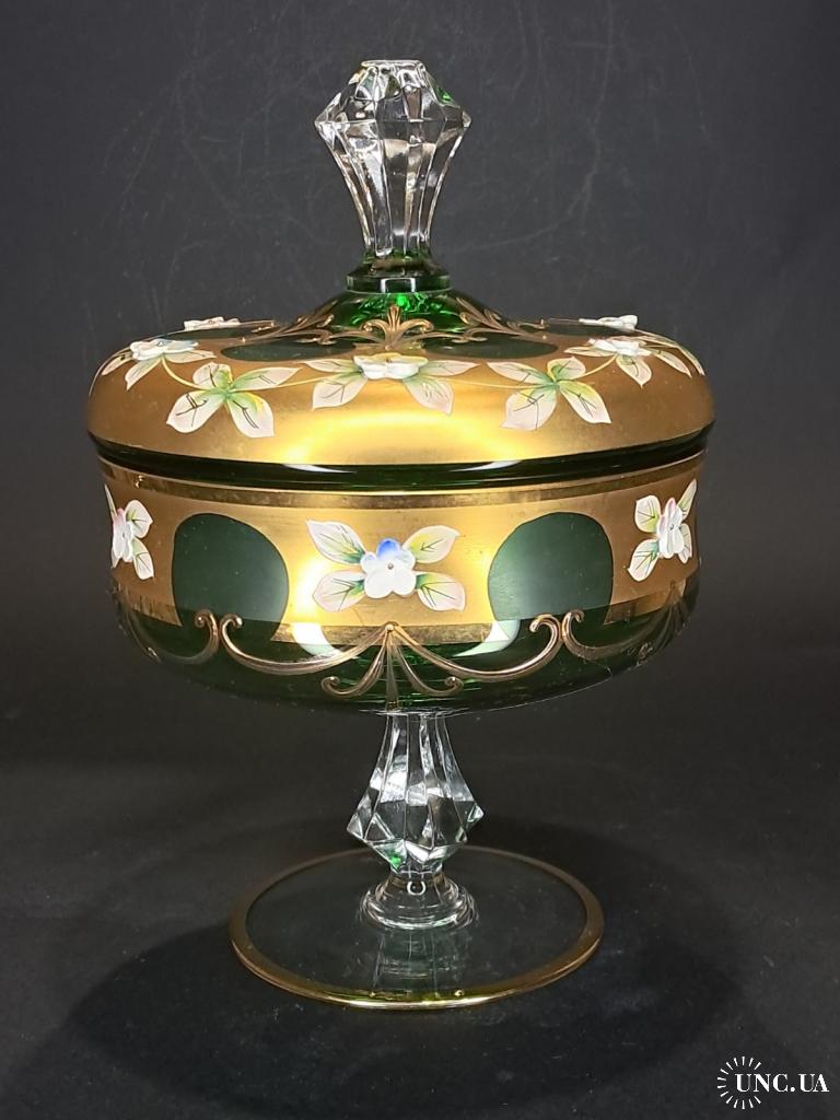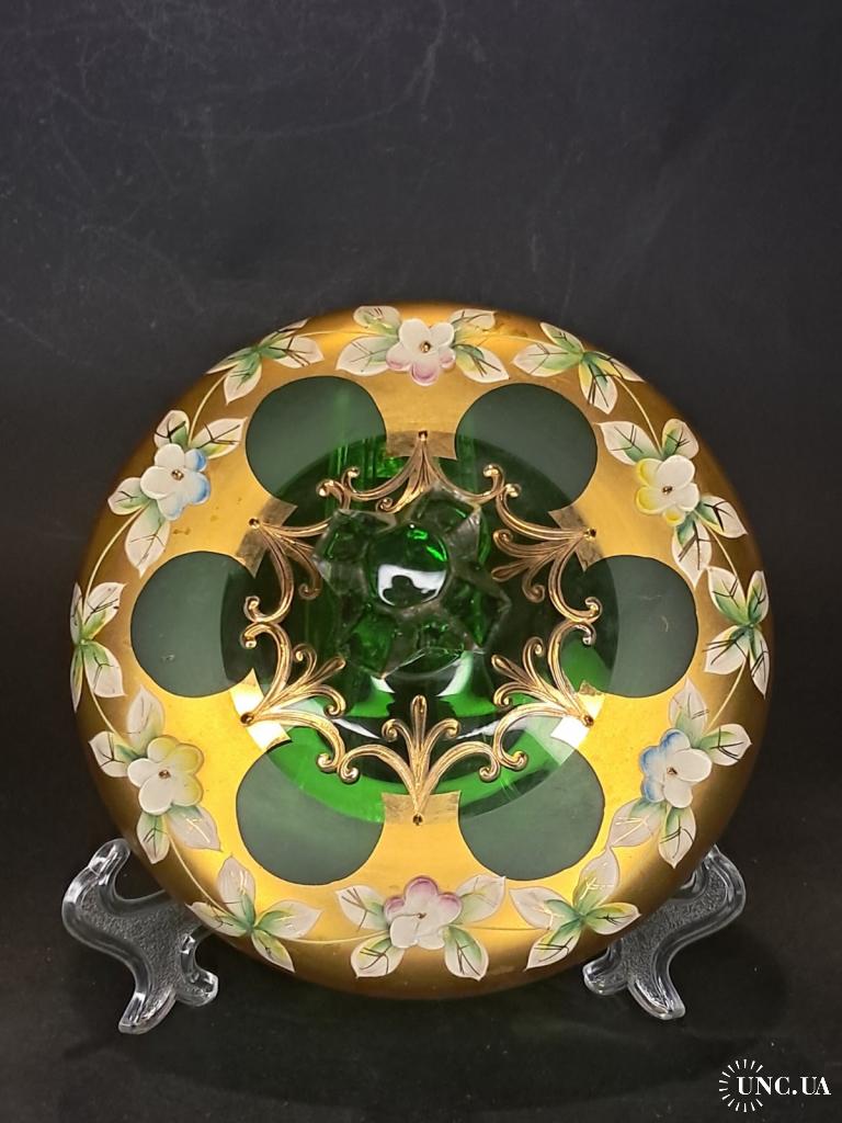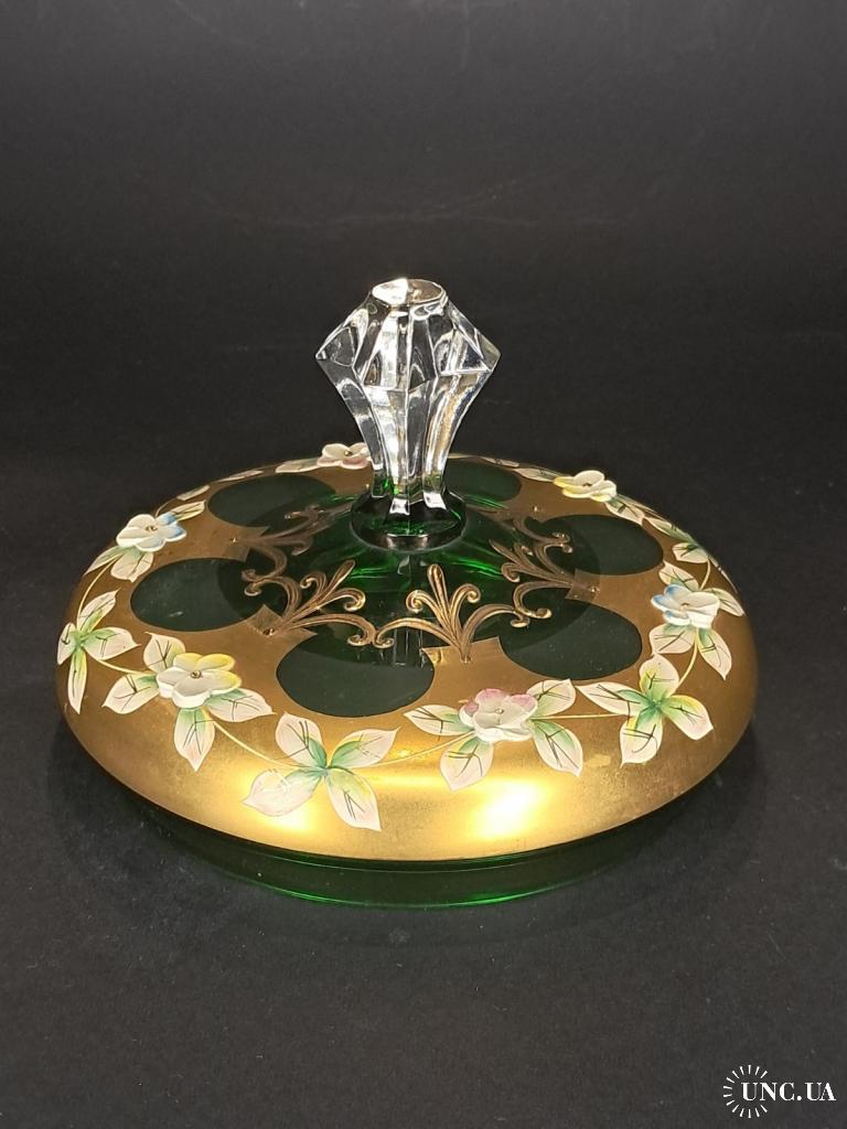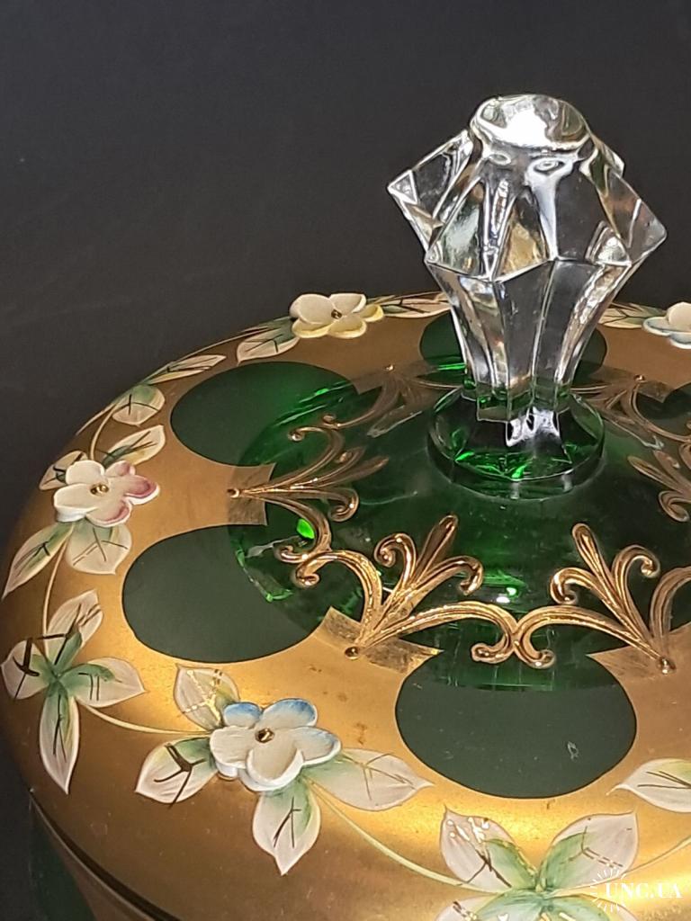 Ручний розпис. Ліплення смальта. Зелене скло та кришталь. Ідеальний стан.