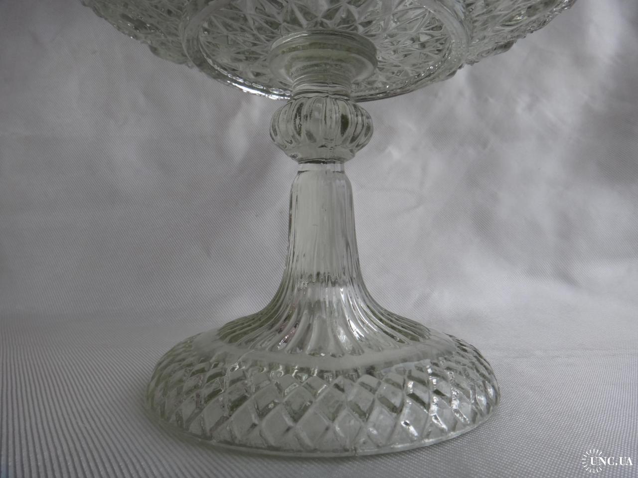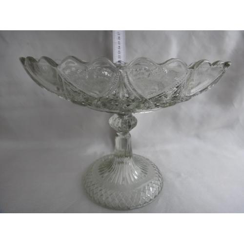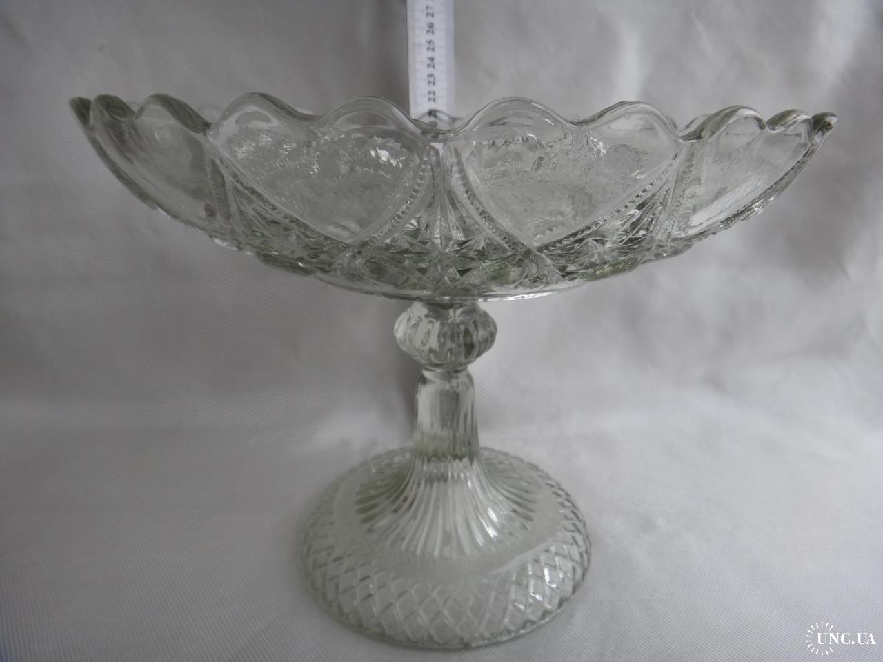 невідомоБольшая фруктовница, на толстой фигурной ножке, с сердечками по верхнему краю вазы, 15 шт. Царская Россия, Мальцовский Стекольный з-д, Раритетная вещь. Состояние отличное, без приобретенных дефектов.