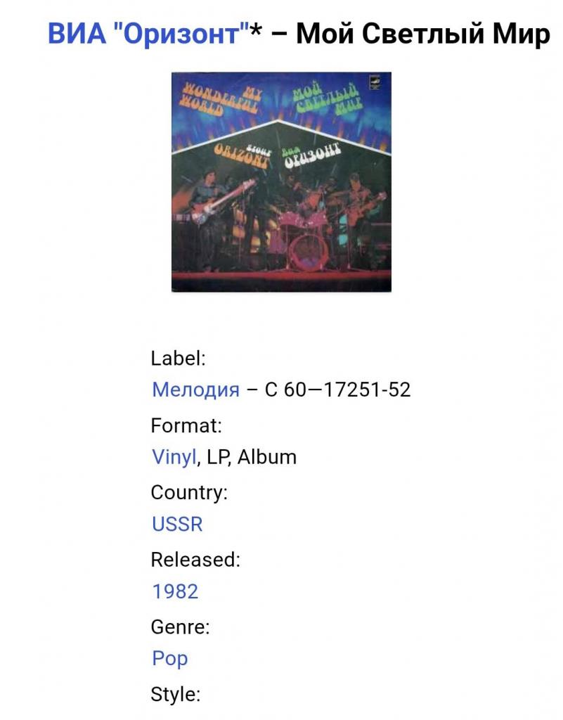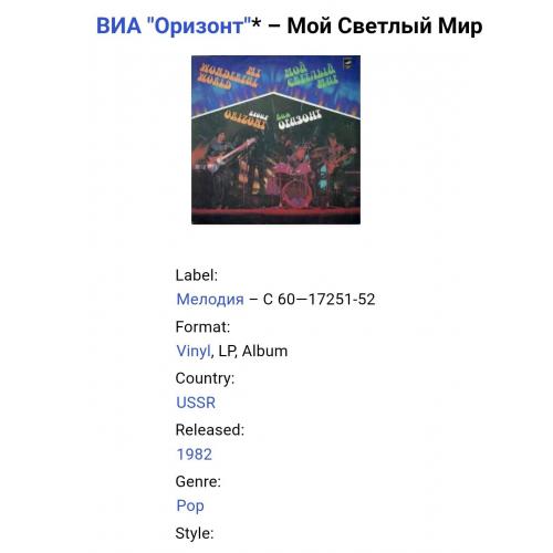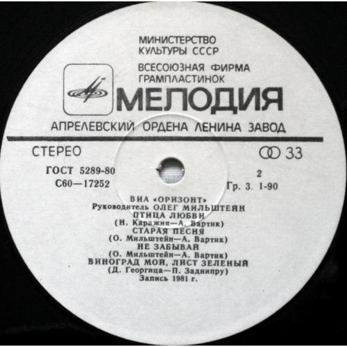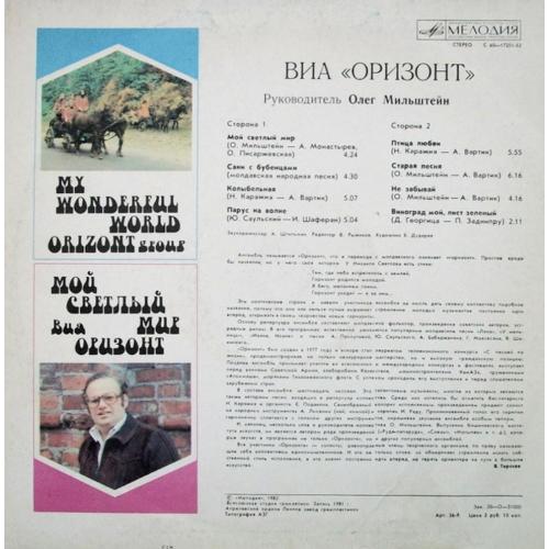 Вінілова платівка. Другий, в дискографії, студійний альбом, Молдавського (радянського) вокально інструментального ансамблю стилю диско, поп, фанк, соул Орізонт до складу якого на той час входили учасники Леонід Рабінович, Тетяна Грекул, Ілля Раду-Райзман, Олександр Носков, Лариса Гелага, Микола Каразія, Альберт Лисенко, Євген Подакін, Валентин Гога, Олександр Оприца, Василь Ротарь, Євген Ротару, Лівиу Штирбу, Дмитро Смокіне, Світлана Рубініна, Олексій Сальников, Григорій Михайлов та Світлана Мельник (Мой Светлый Мир) 1981. Випуск фірми (Мелодія) СРСР, Апрелєвський завод грамплатівок, 1982-ий рік. Оригінальне, першопресове видання. Платівка нова, неіграна, під голкою не була. Категорія М (Mint). Стан конверту NM-. Відправка по Україні службами доставки: Нова Пошта, Укр Пошта, Делівері. Також відправляємо посилки за кордон по цілому світу.