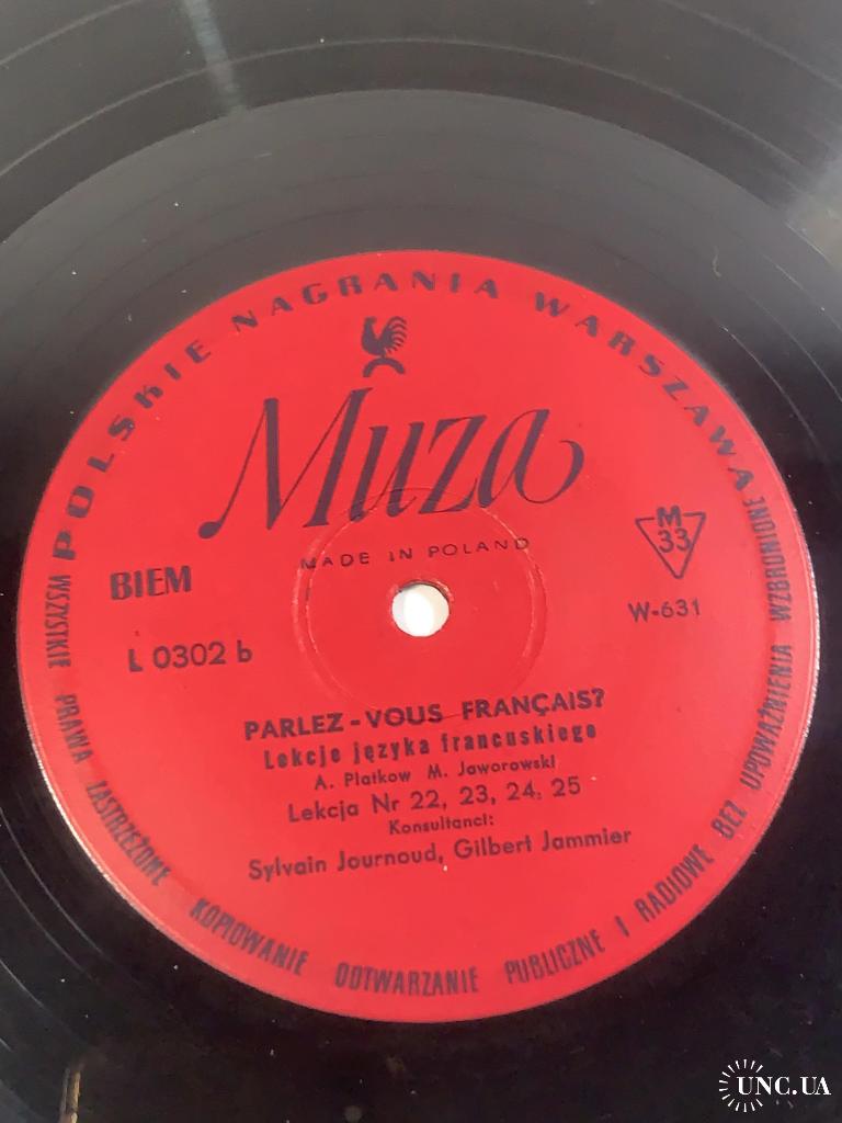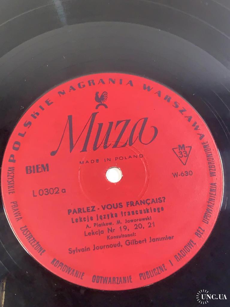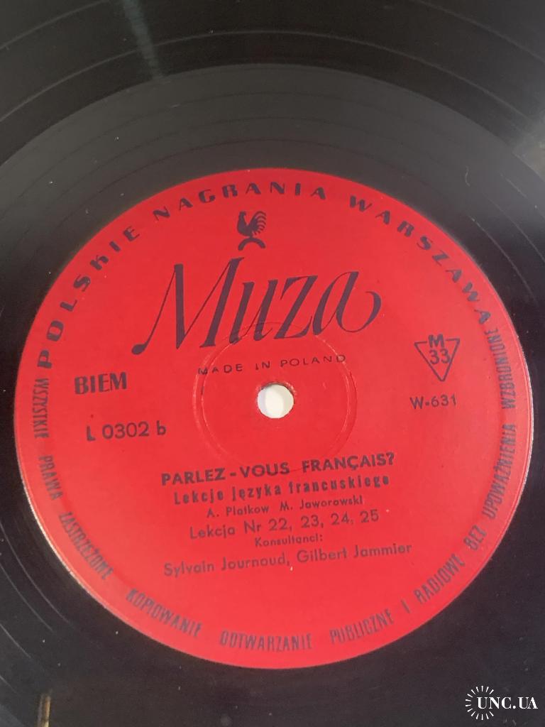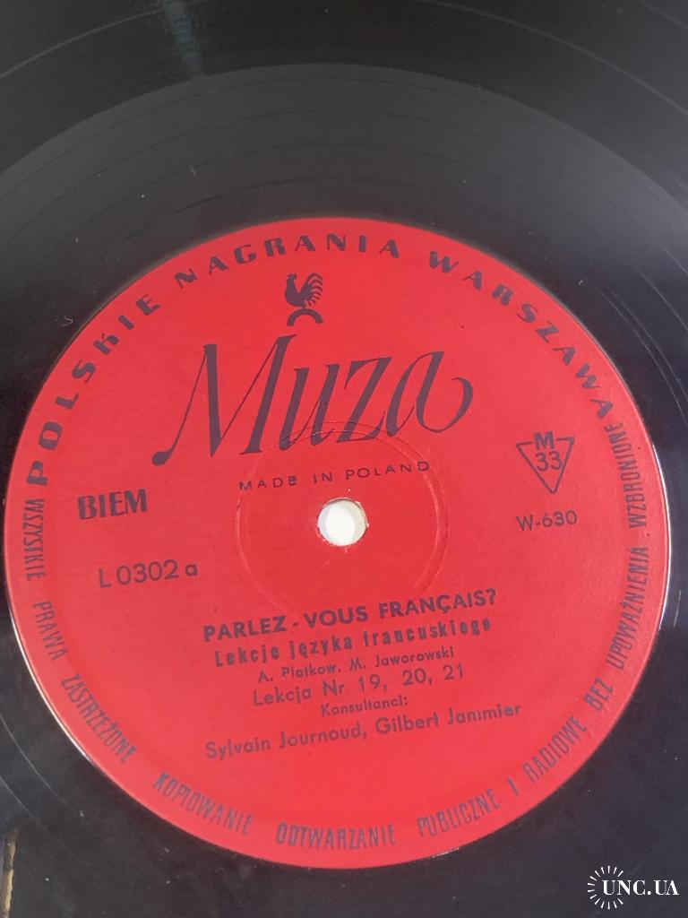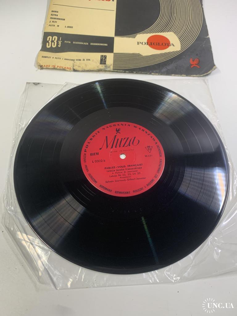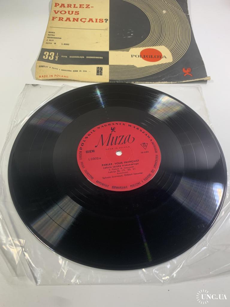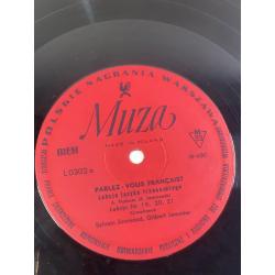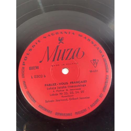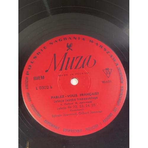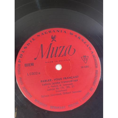 Винтажная учебная грампластинка для изучения французского языка, выпущенная польским лейблом Polskie Nagrania Muza в Варшаве. Издание представляет собой часть аудиокурса «Parlez-Vous Français?» («Вы говорите по-французски?»), который использовался для самостоятельного обучения и языковой практики.