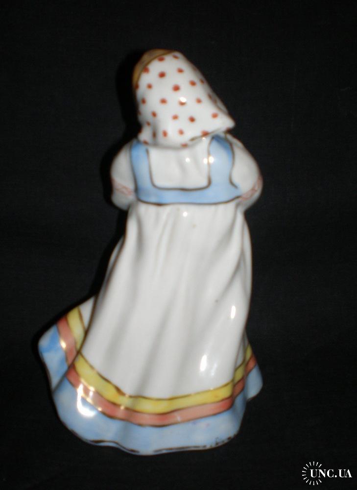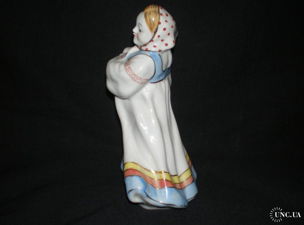1981-2000Вінтажна порцелянова фігурка "Плясунья", Городница, клеймо змазане. В гарному стані, є маленький (1мм) скол - на хустинці в руках. Висота 15см
