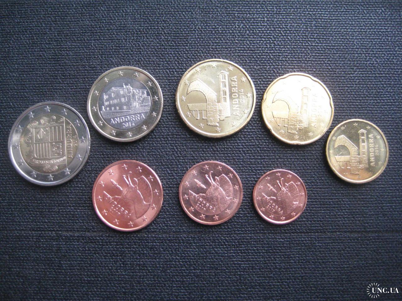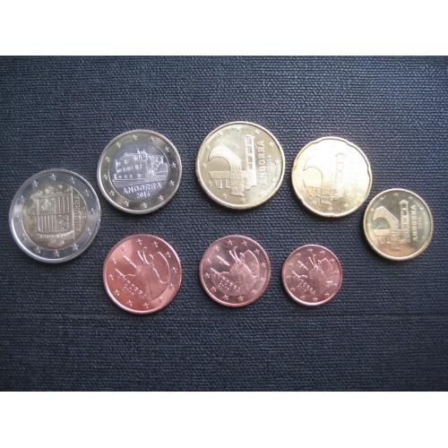 №2825. Вісім монет-одним лотом. Метал-біметал, латунь. Оригінальні монети - Два Один євро, 50 20 10 5 2 1 євроцентів Андора 2014-2017. Стан прошу оцінювати по фото. Пересилка - Нова пошта. Для киян можливість зустрічі та перегляду (неділя метро Нивки). В РФ и Белоруссию не отправляю!