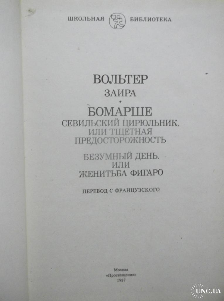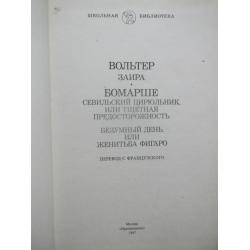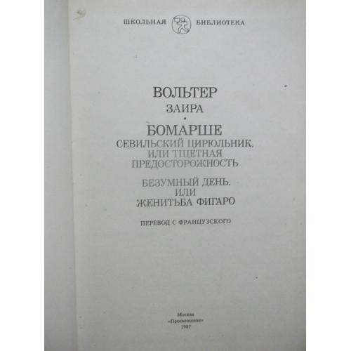 Вольтер. Заира. Бомарше. Сивильский цирюльник. Женитьба Фигаро. Серия ШБ. Издательство: Просвещение. 1987 год. Отличное состояние
