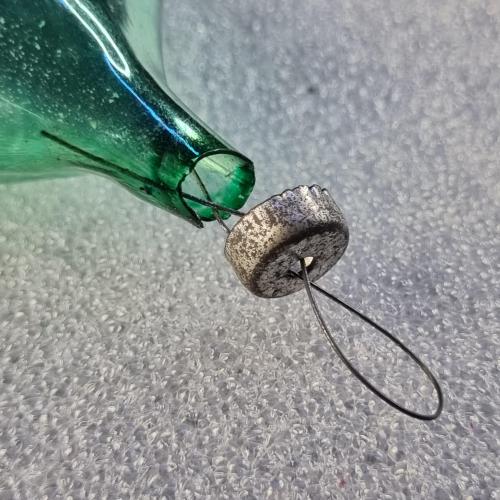 Виготовлена з тонкого зеленого скла з металевим блиском. поверхня з легким рельєфом.
