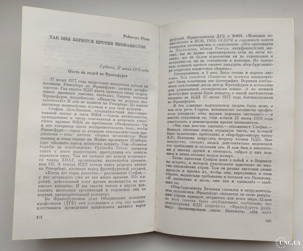 Сборник очерков известных немецких журналистов в стиле журналистского расследования о неонацистских группировках в ФРГ, их связях внутри Германии и за рубежом, а также об атмосфере, которая способствует деятельности неонацистов.