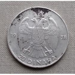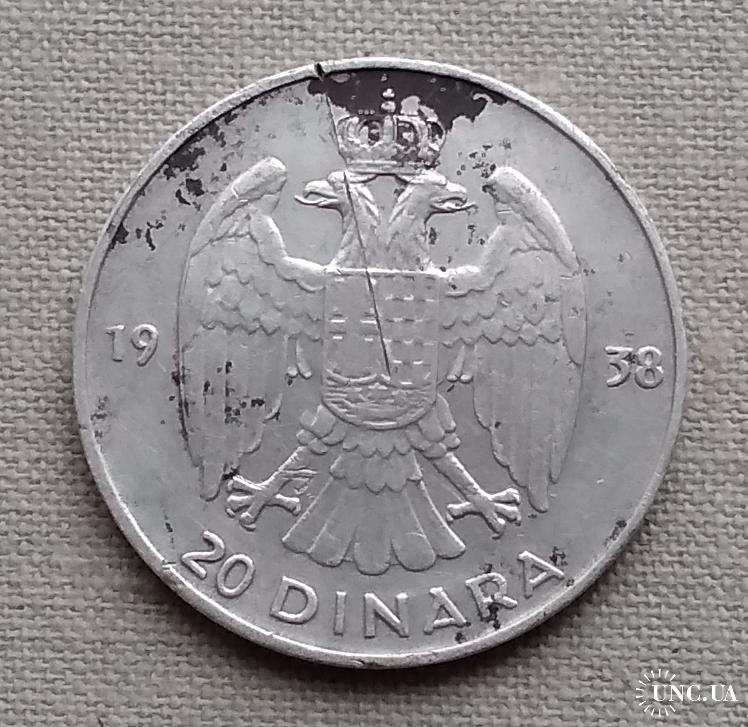 ОригіналЮгославия 20 динаров, 1938 г, серебро