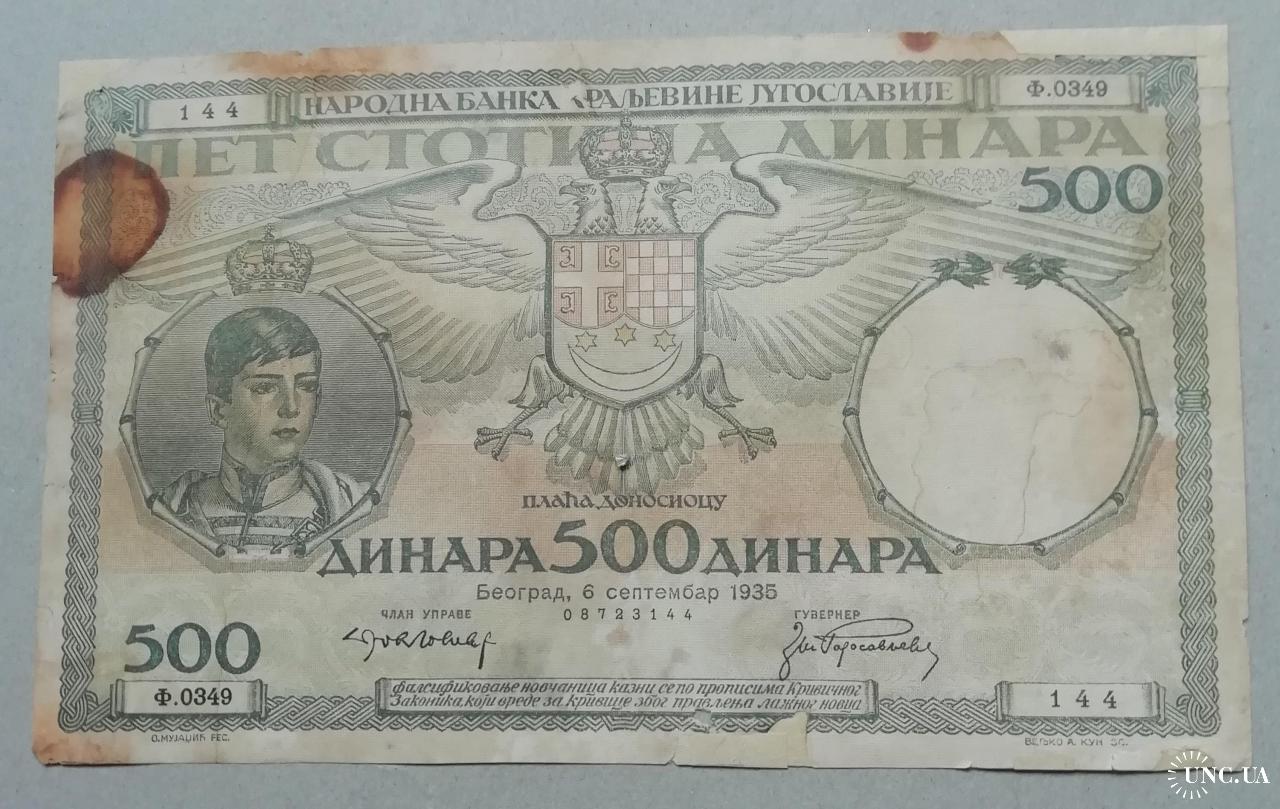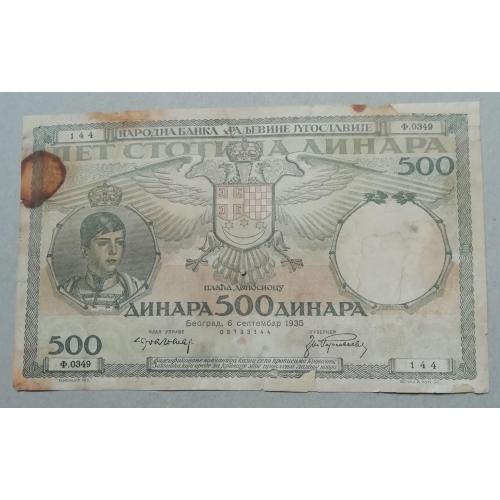 наявнийЮгославия 500 динар 1935 ПОДКЛЕЕНА!!!!!!!!!! РЕСТАВРИРОВАНА