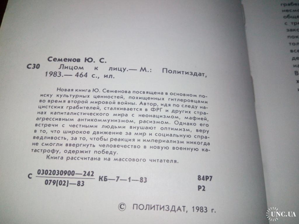 Юлиан Семенов ЛИЦОМ К ЛИЦУ.