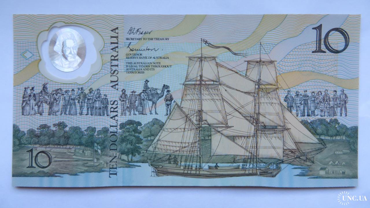 наявнийЮвілейна Австралія 1988р Банкнота 10 доларів до двохсотріччя перший випуск серія АВ UNC