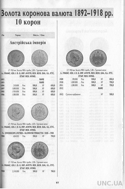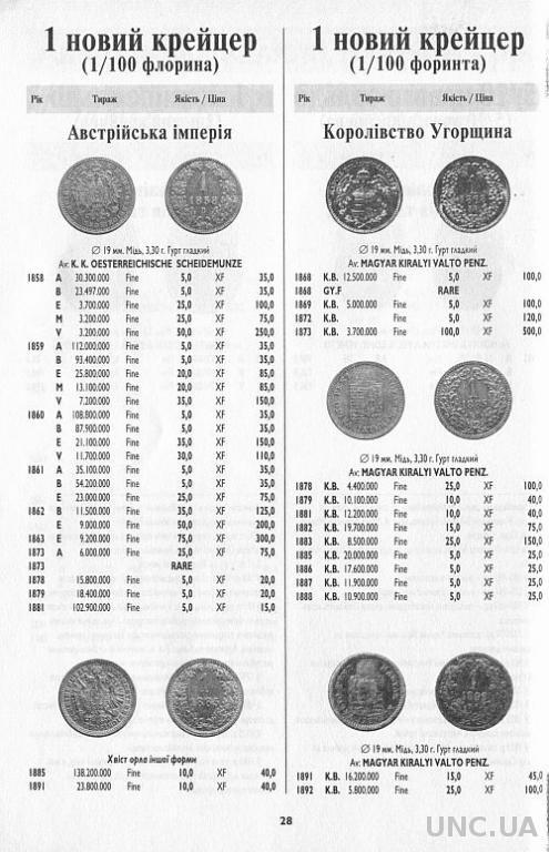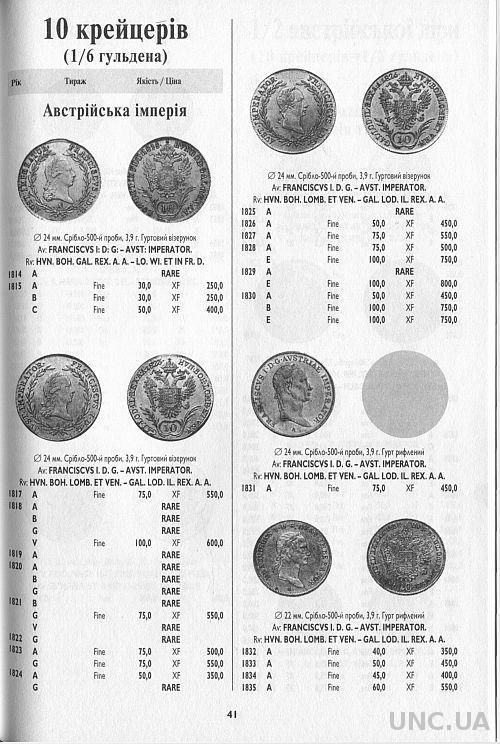 Каталог-ценник монет Австрийской империи 1811-1917 годов. Цены приведены в украинских гривнах.