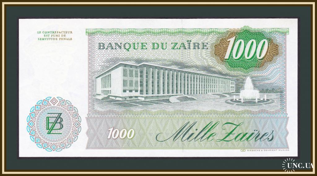 Номинальная стоимость: *1 000 Ƶ - Заирский