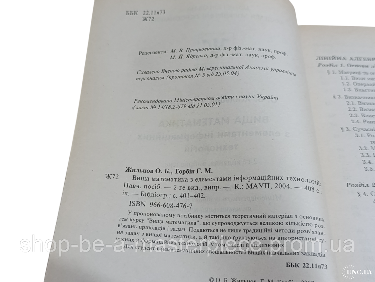 Жильцов О. Б., Торбин Г. М. Высшая математика с элементами информационных технологий 2004 есть другие учебники от МАУП мягкая обложка. немного потертая. внутри в идеальном состоянии Учеб. пособие. - 2-е изд., выпр. К.: МАУП, 2004. – 408 с.: ил. – Библиогр.: с. 401–402. В предлагаемом руководстве содержится теоретический материал по основным темам курса "Высшая математика", сопровождающийся большим количеством решений примеров и задач. Представляются не только традиционные методы решения задач по высшей математике, но и основанные на использовании современных информационных технологий, в том числе и отечественных. Для студентов нематематических специальностей вузов.Відповіді продавця на ваші питання