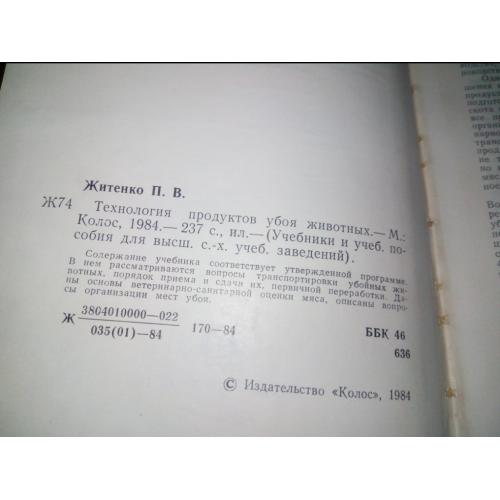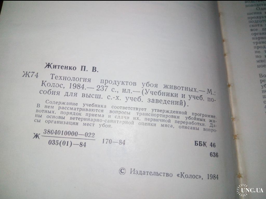 Житченко П.В. Технология продуктов убоя животных.