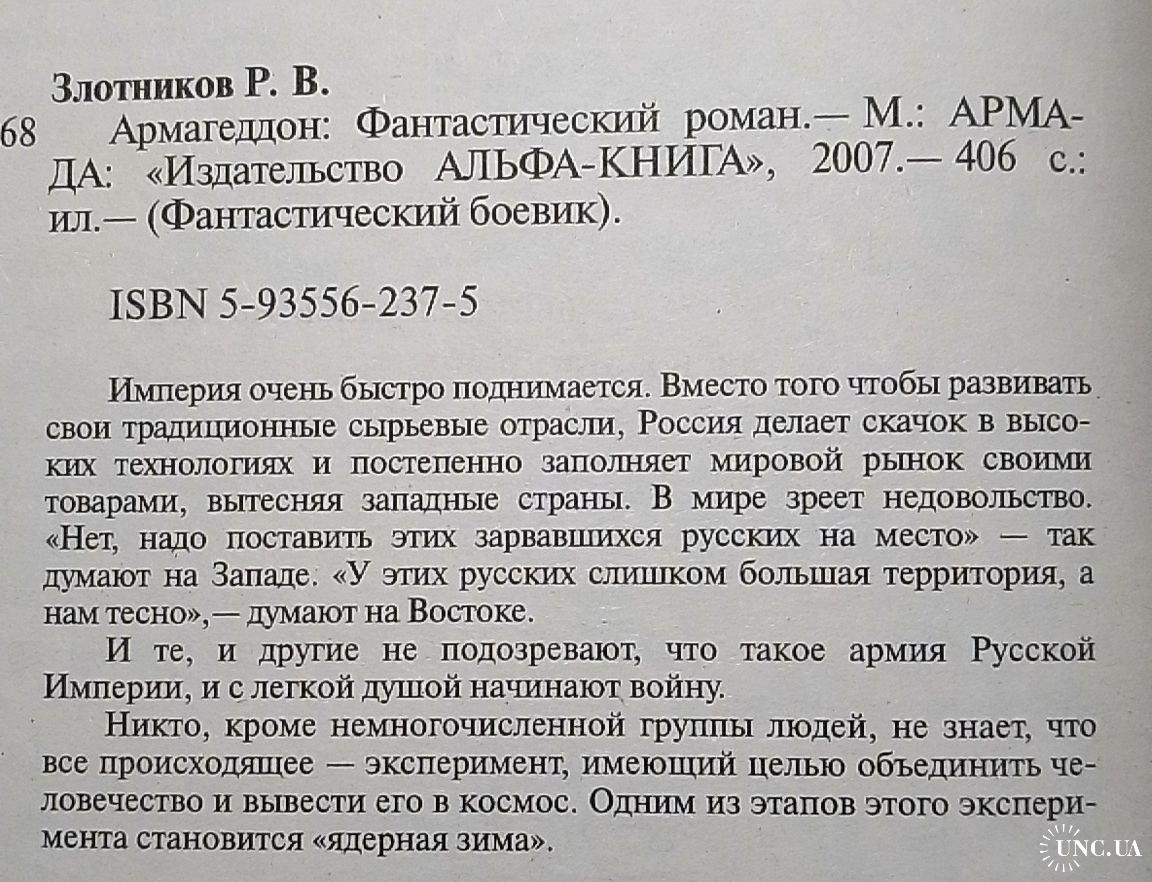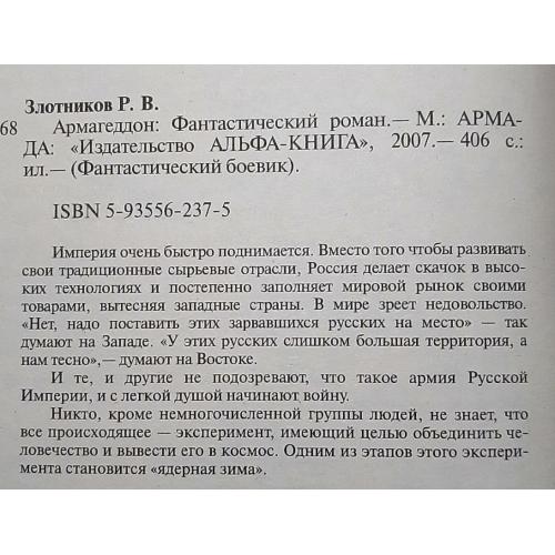 Злотников. Армагеддон. Серия Фантастический боевик. Издательство: Армада. 2007 год. Очень хорошее состояние