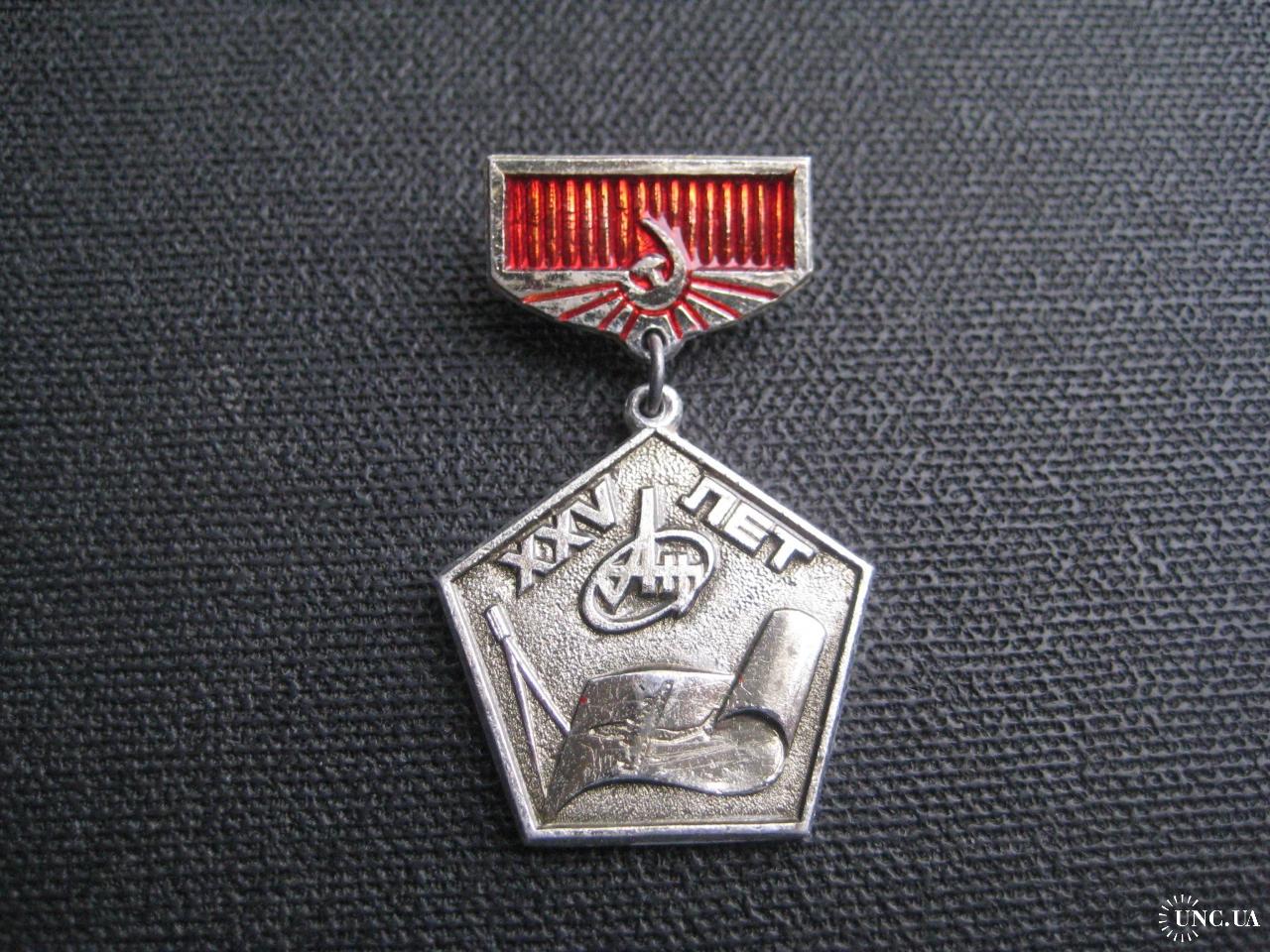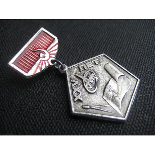 №4510. Оригінальний значок (легк.мет.), ХХV років Київський авіазавод Антонов КБ Антонова. Клеймо-СМЗ. Висота-40мм. Пересилка - Нова пошта, Укрпошта. Для киян можливість зустрічі та перегляду (неділя метро Нивки). В РФ и Белоруссию не отправляю!