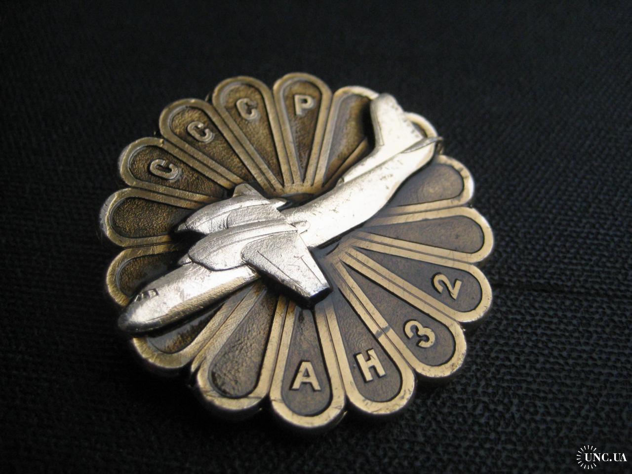 №4513. Оригінальний значок (легк.мет.), літак Ан-32 Антонов. Діаметр-42мм. Клейио-САЗ. Стан прошу оцінювати по фото. Пересилка - Нова пошта, Укрпошта. Для киян можливість зустрічі та перегляду (неділя метро Нивки). В РФ и Белоруссию не отправляю!