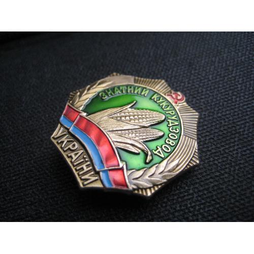 1981-2000№4485. Різновид. Оригінальний значок (легк. мет.) - Знатний кукурудзовод України. Є клеймо виробника. Стан прошу оцінювати по фото. Розмір:30х30мм. Пересилка - Нова пошта, Укрпошта. Для киян можливість зустрічі та перегляду (неділя метро Нивки). В РФ и Белоруссию не отправляю!