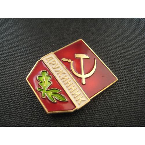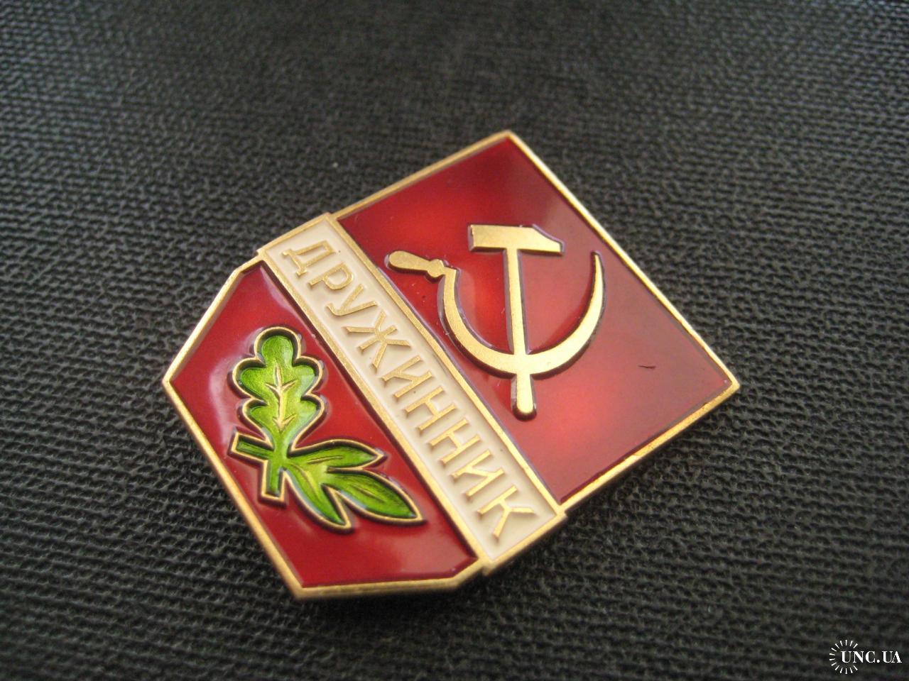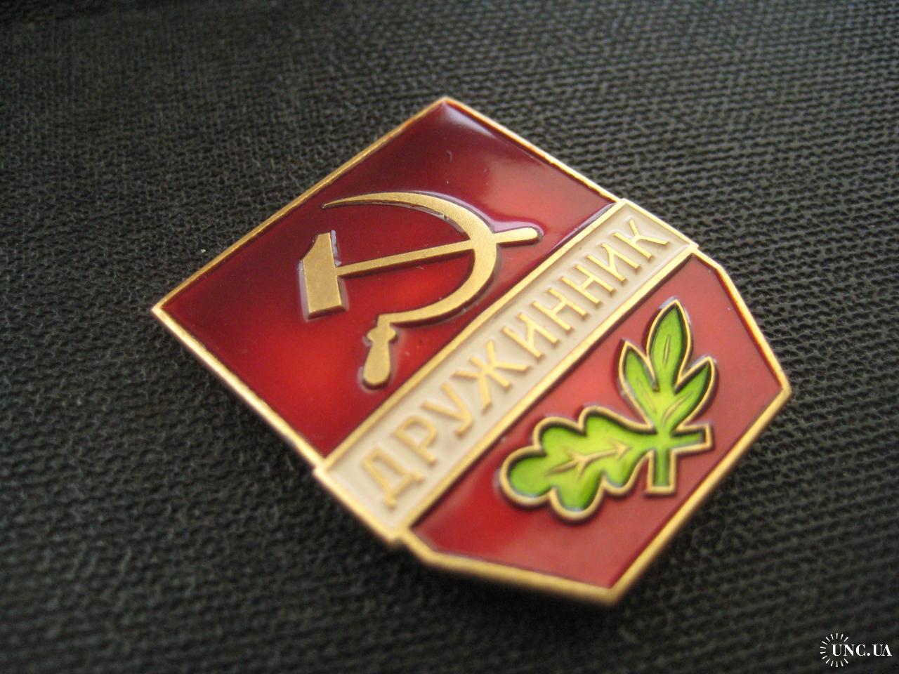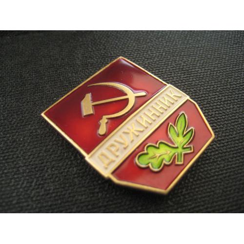 №4526. Оригінальний значок (легк. мет.) - Дружинник СССР. Клеймо-ЛМД. Стан прошу оцінювати по фото. Розмір:35х29м. Пересилка - Укрпошта, Нова пошта. Для киян можливість зустрічі та перегляду (неділя метро Нивки). В РФ и Белоруссию не отправляю!