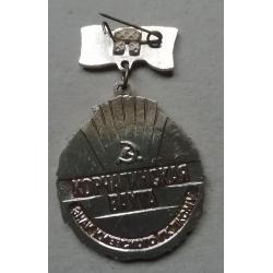 Знак киевского ЛКСМУ-КОРЧАГИНСКАЯ ВАХТА- октябрьская революция 70