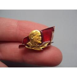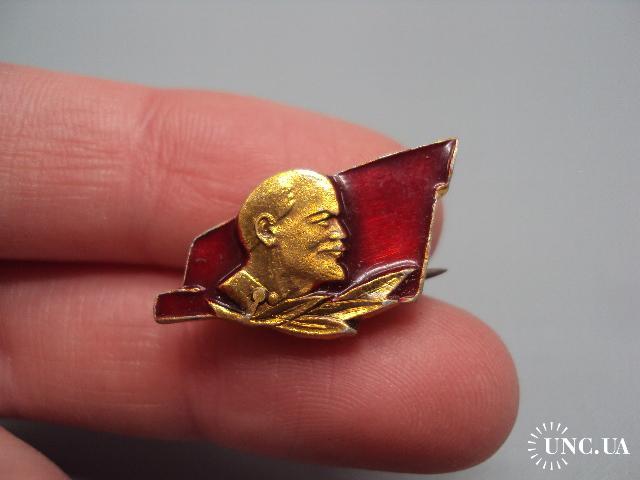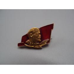 Знак ленин портрет профиль на красном флаге ссср лавровый лист флаг лавр №17376