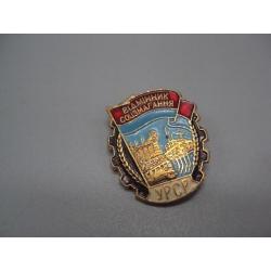 Знак Отличник соцсоревнования усср плотина ж/д энергетика поезд ссср №17500