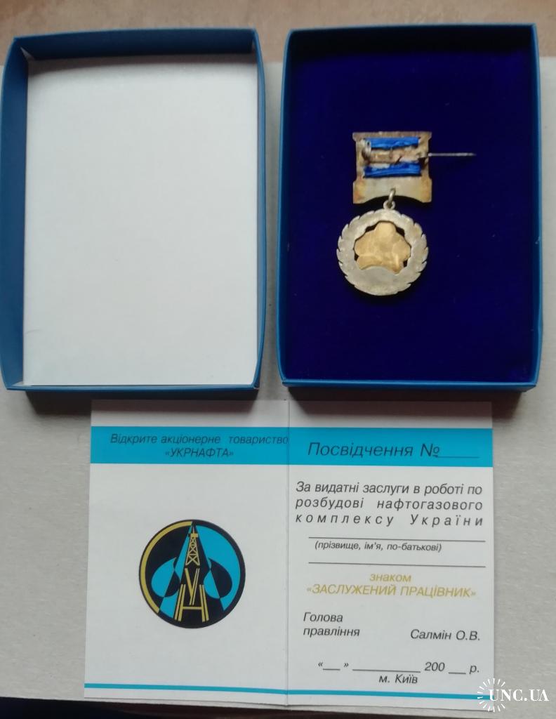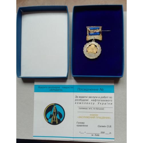Знак: УКРНАФТА-ЗАСЛУЖЕНИЙ ПРАЦІВНИК