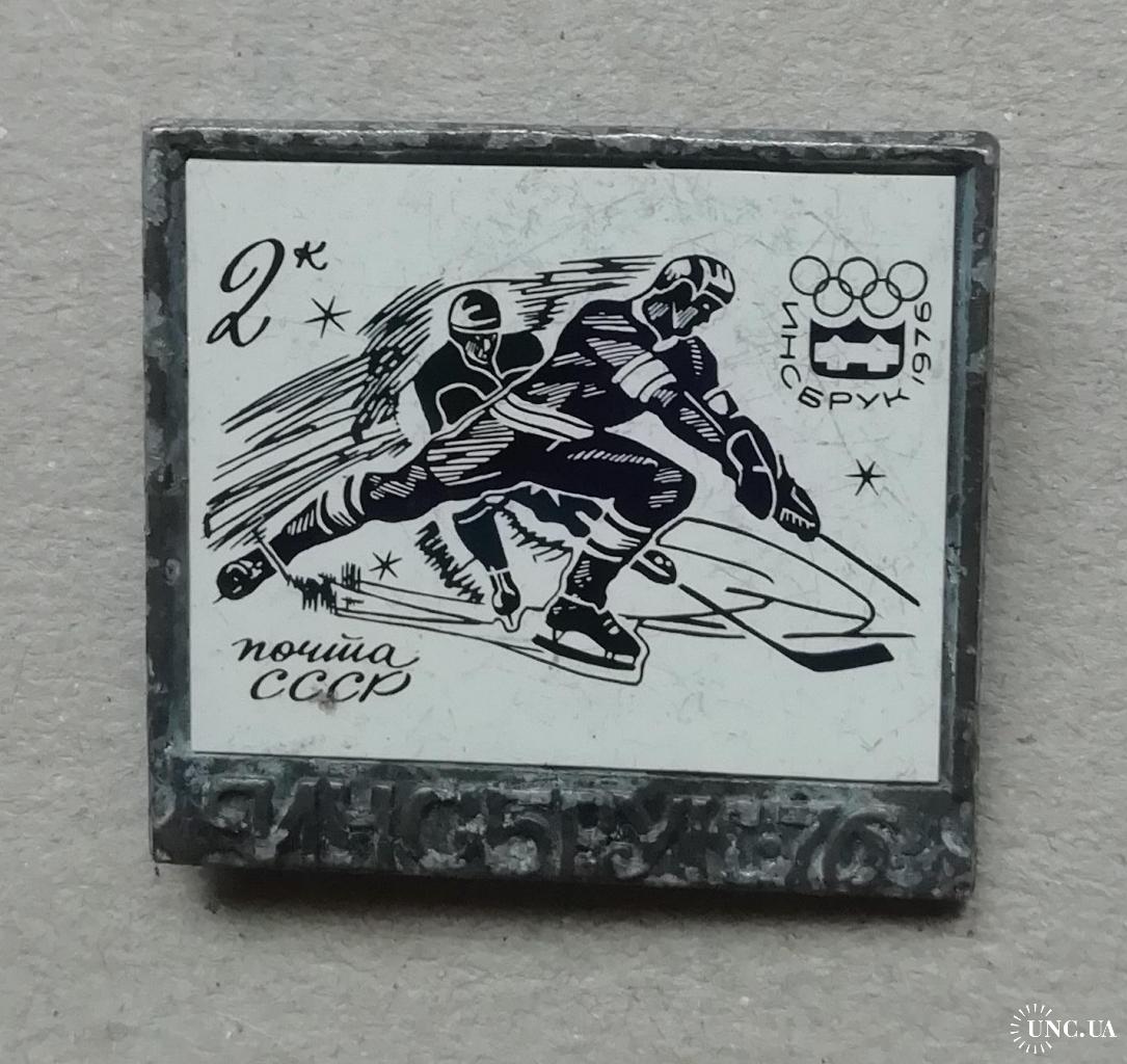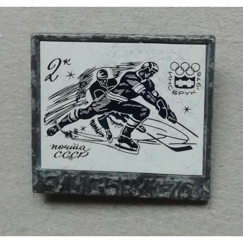 Знак значок - Инсбрук 1976 ОЛИМПИЙСКИЕ ИГРЫ МАРКА почта СССР 2 коп 1976
