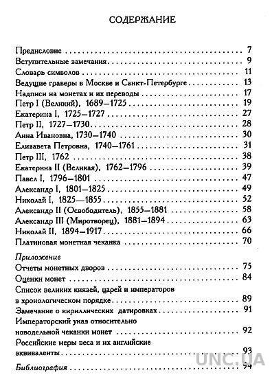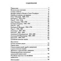 В книжке популярного нумизмата Г.М.Северина даны идентификация и описание всех известных видов монетной чеканки Российской империи с 1701 до 1911 года, интегрированы эталоны золотых и платиновых жетонов по случаю коронации русских королей, памятных медалей исторической и индивидуальной ценности. Книга значима к тому же тем, что при помощи приведенных в ней знаков хоть какой коллекционер сможет найти монетный двор, выпустивший чеканку, гравера, вид дизайна гурта монет, простой либо новодельный выпуск.