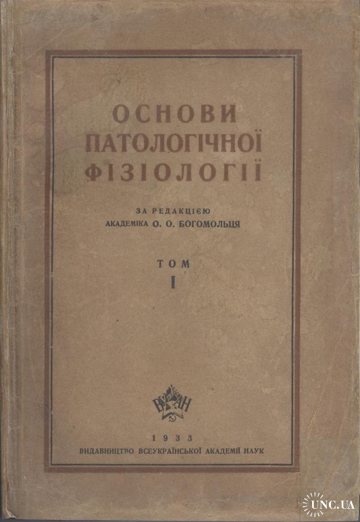 Основи патологічної фізіології за ред. академіка О.О. Богомольця Том 1 ВУАН 1933 Київ Шоста друкарня
