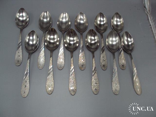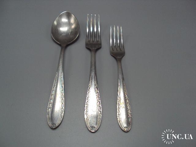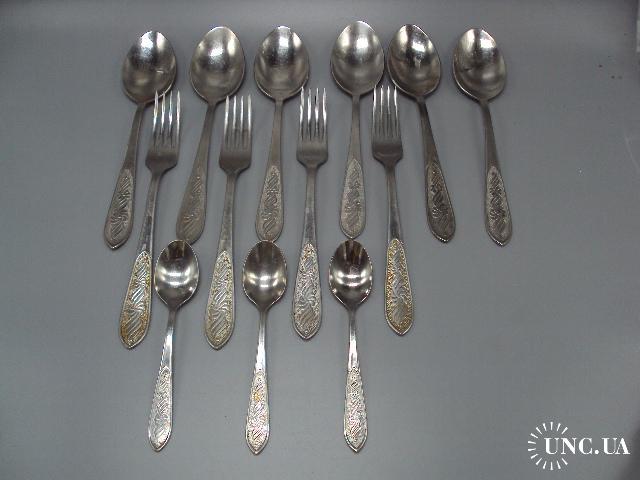 Столовые приборы ложки и вилки столовые, ложечки чайные нерж узор цветы нержавейка лот 13 шт №18621в