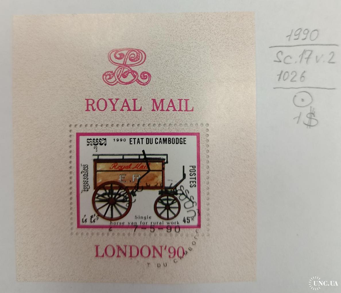 Камбоджа, 1990 рік, Міжнародна виставка марок Лондон, Англія - Кінний транспорт Королівської пошти