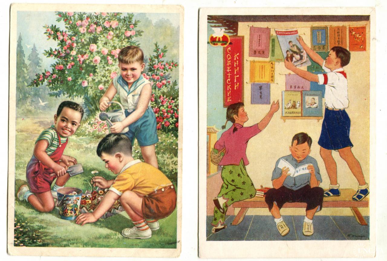 ПРИВЕТ с Всесоюзной Сельско-Хозяйственной ВЫСТАВКИ = Рабочий и колхозница МУХИНА = 1954 р = чиста \\