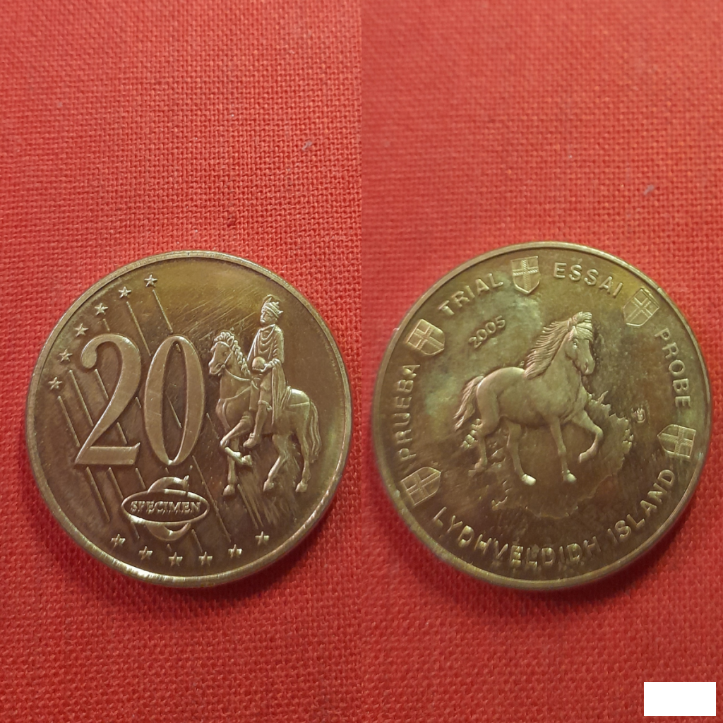 Лидвелдид остров 20 евроцентов 2005г.30мм,LYDHVELDIDH ISLAND(Исландия),из набора европроба,оч.редкие