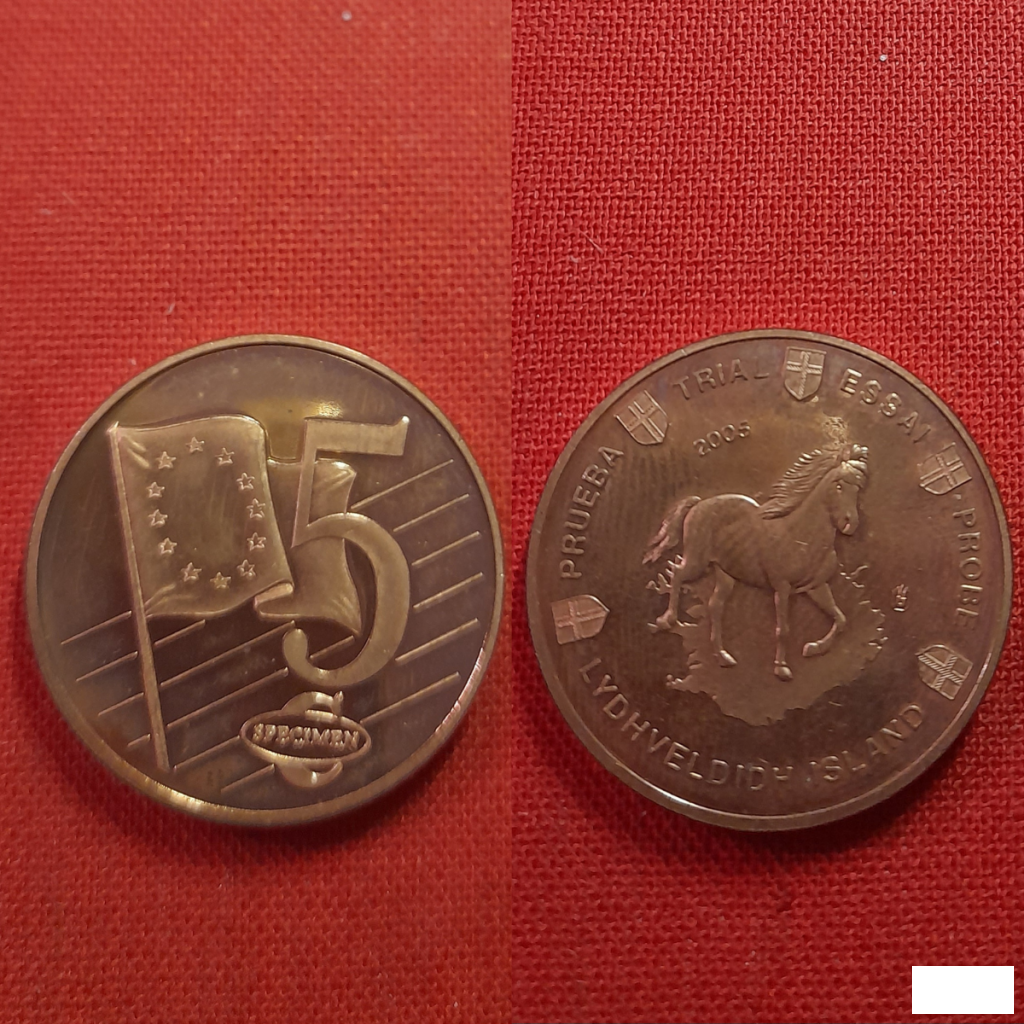 Лидвелдид остров 5 евроцентов 2005г.29мм,LYDHVELDIDH ISLAND(Исландия),из набора европроба,оч. редкие