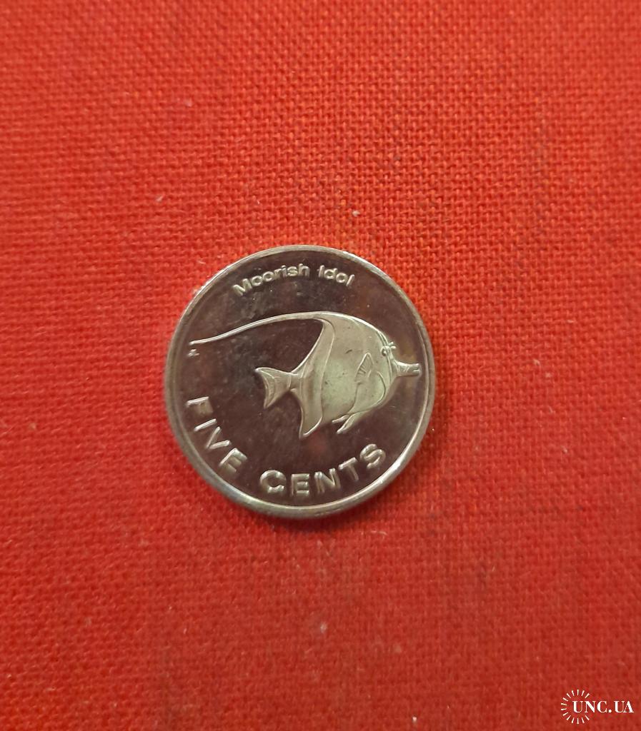 Микронезия 5 центов 2012г.Рыба Мавританский идол (Moorish idol).Федеративные Штаты Микронезии,редкие