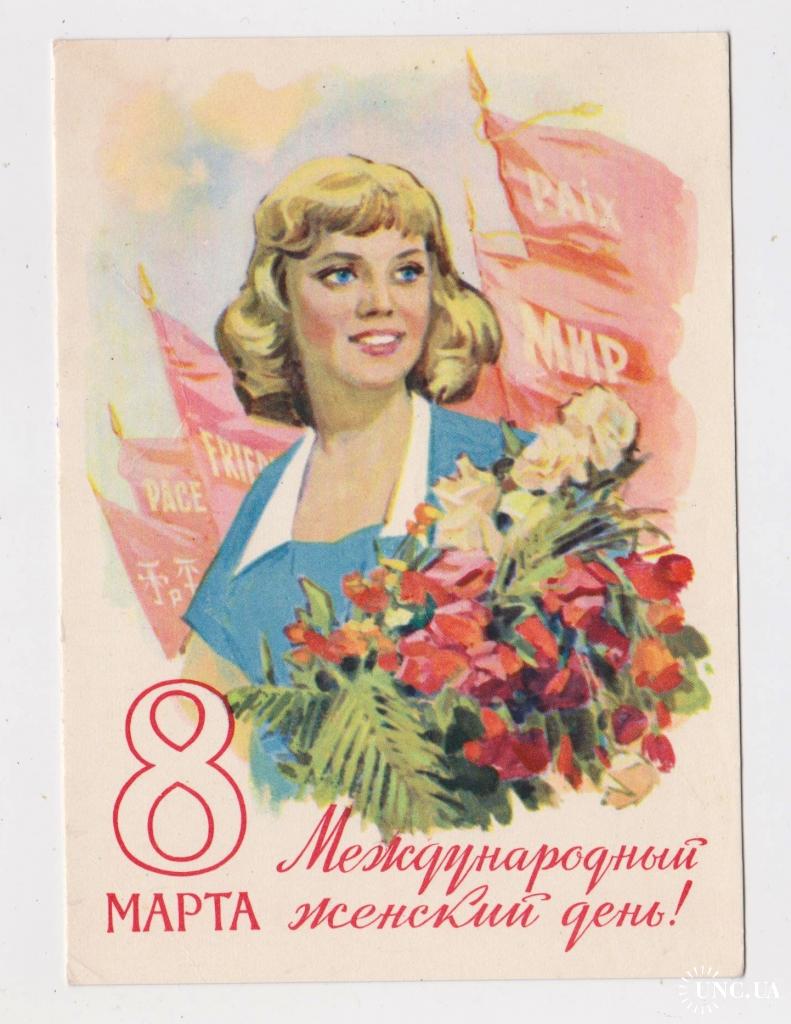8 БЕРЕЗНЯ - 8 МАРТА = листівка 1988 р. = ВЕЛИЧКИНА = подвійна чиста без перегину = тираж 900 тис. \\