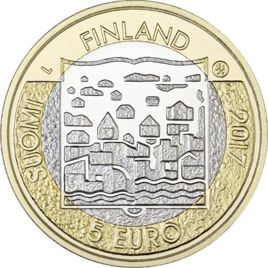 На реверсі зображено ландшафти фінських полів, оформлені відкритою книгою, а також написи "SUOMI FINLAND, 2017, 5 євро".