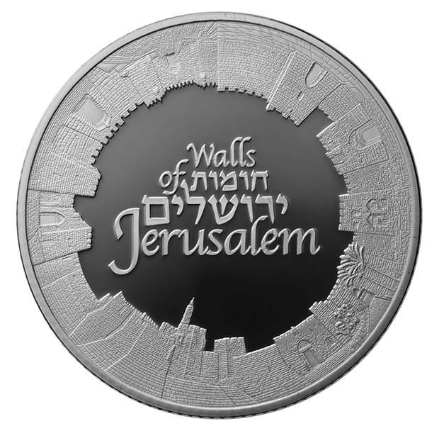 На аверсі монет по колу представлені обриси Стіни Єрусалима, а в центрі напис «Walls of Jerusalem» (на івриті та англійською).