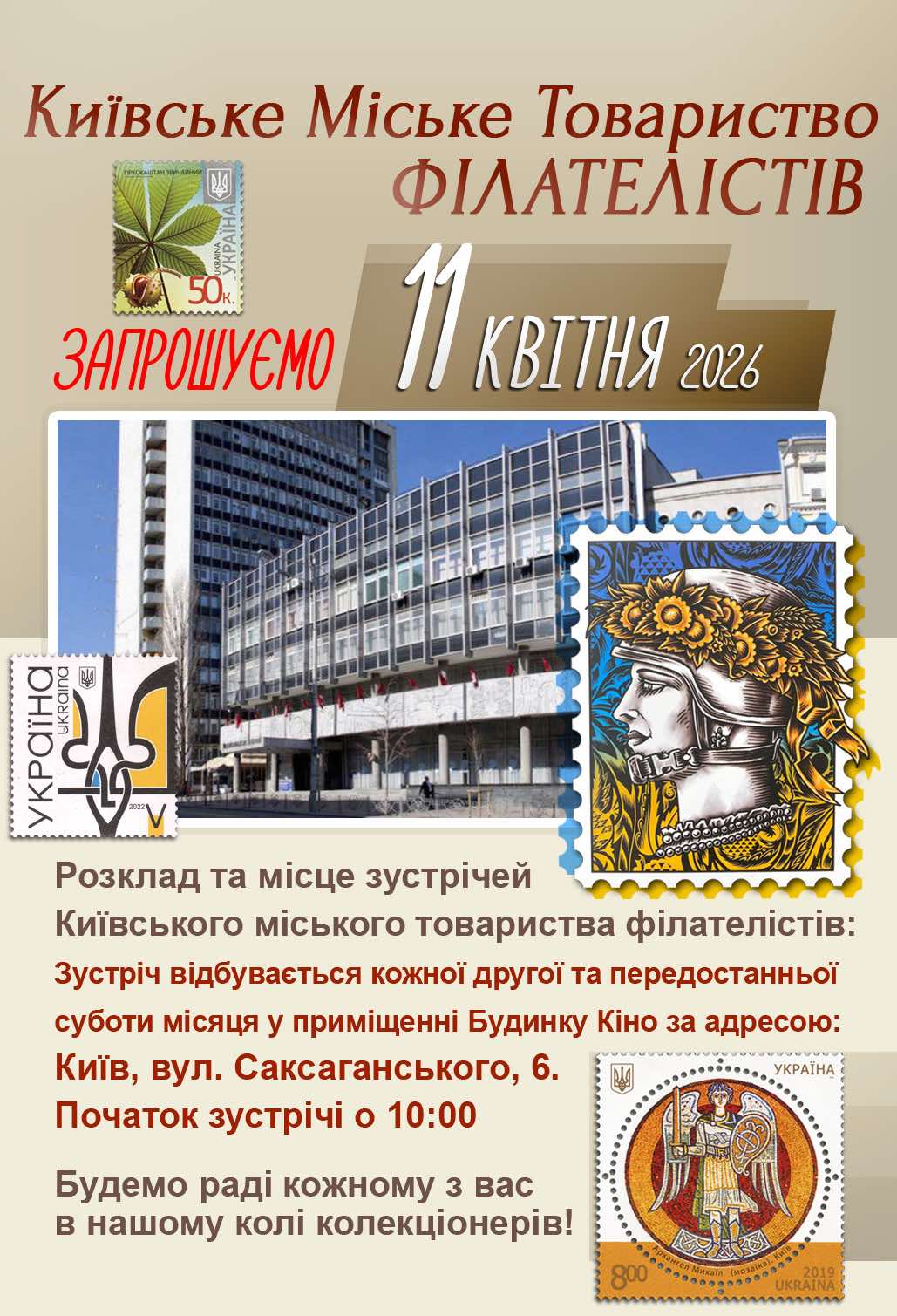 за адресою: Київ, вул. Саксаганського д. 6, Будинок кіно, конференц-зал, і кожну останню суботу місяця в Білому залі з 10:00 до 13:00 збираються філателісти Києва. Всім бажаючим надаються столи. Вхідний квиток - 15 грн, персональний стіл - 50 грн.